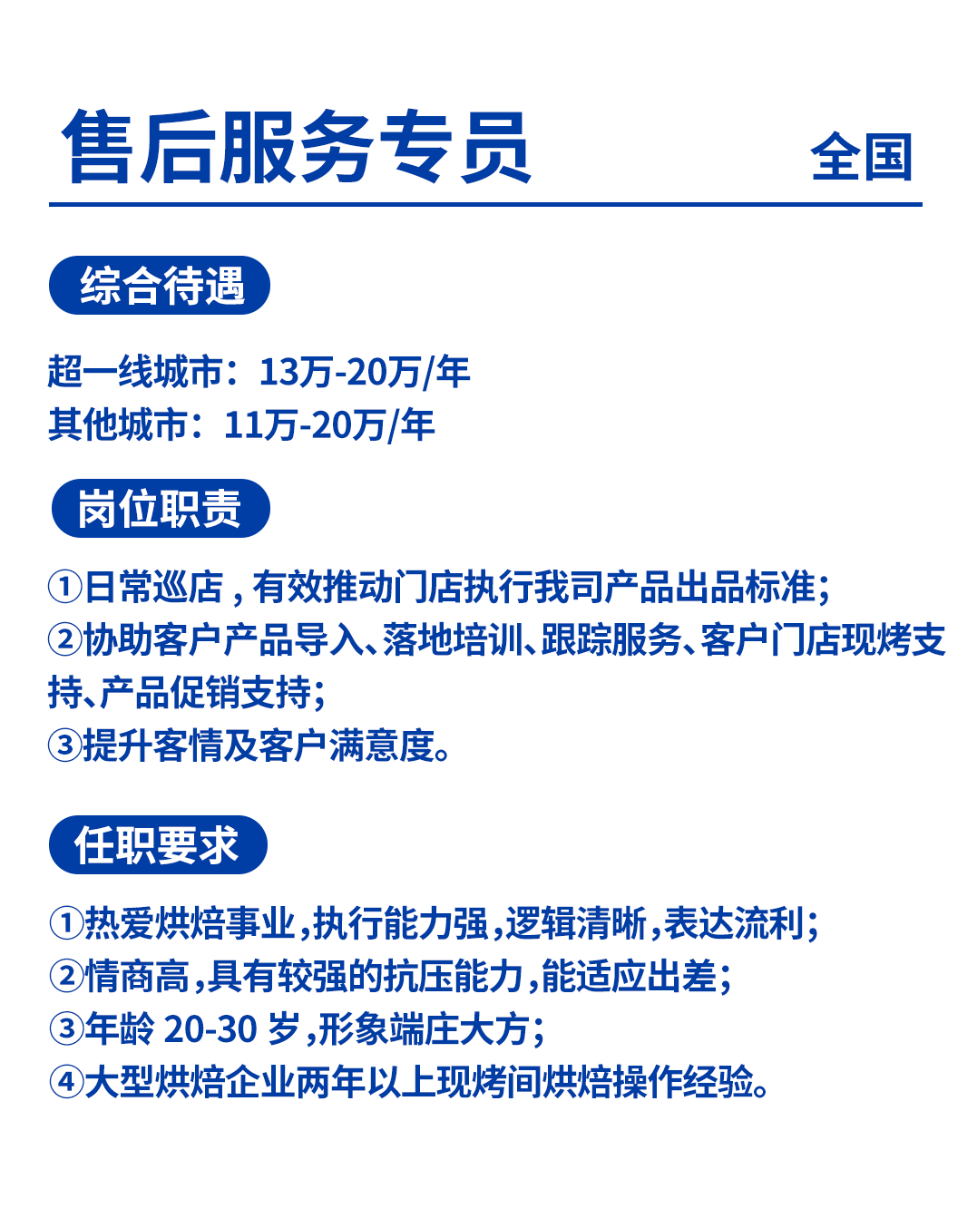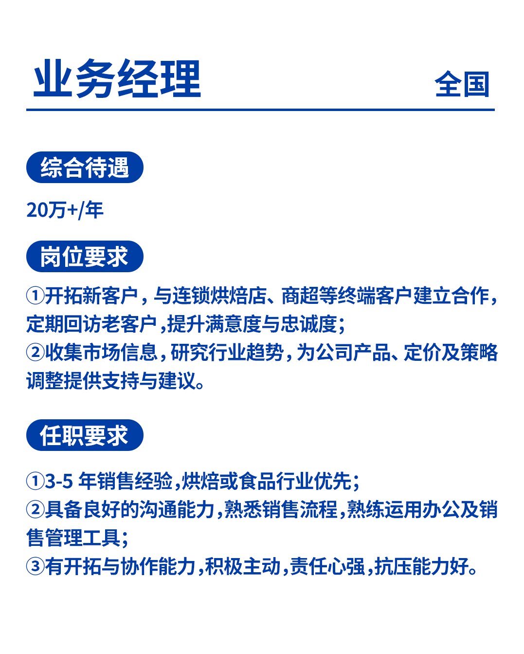 ①3-5年销售经验,烘焙或食品行业优先;