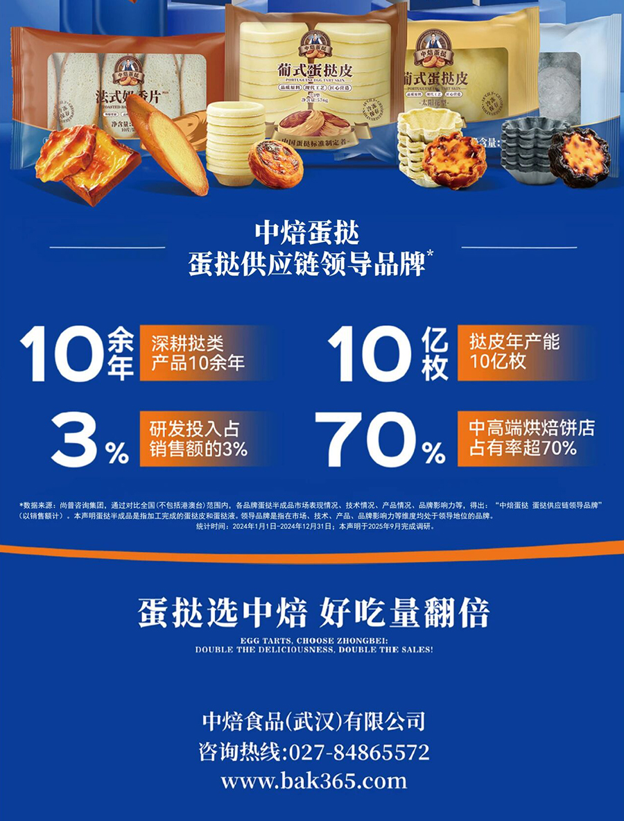中焙蛋挞在第十四届中国食品健康七星奖评选中,荣获“年度新秀奖”与“现象级爆品影响力奖”。该奖项以七大维度严苛评审,被誉为食品行业“奥斯卡”,此次获奖标志着中焙蛋挞在品质、创新与供应链管理方面的综合实力获行业高度认可。 作为蛋挞供应链领导品牌,中焙蛋挞深耕行业十五年,率先推动品类标准化与技术创新。从开创“四合一”冷冻挞液,到研发64层酥脆挞皮、突破冷吃壁垒,持续以技术升级引领产业发展。而这次获得“现象级爆品影响力奖”,正是对中焙蛋挞出圈的“黄金搭档”的最好认可。 中焙黄金搭档已被超70%中高端连锁烘焙品牌选用,有效解决蛋挞品质不稳、冷后不酥等行业痛点,助力多家头部连锁烘焙品牌实现销量增长与产品创新。 未来,中焙蛋挞将继续以匠心与创新,推动中国蛋挞产业高质量发展。...